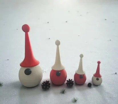 Imprimés en PLA biodégradable dans un rouge éclatant rappelant le Père Noël, ces gnomes sont légers, résistants et réutilisables d’année en année.