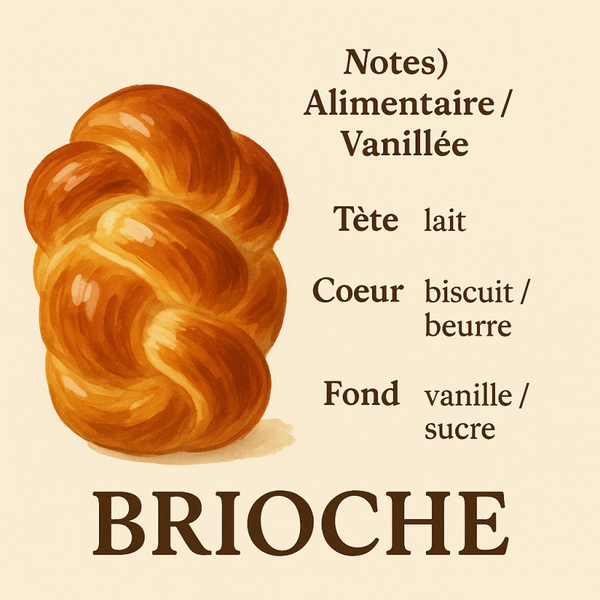 La bougie Brioche diffuse un parfum doux et gourmand mêlant la vanille, le beurre chaud et la pâte dorée, pour une ambiance apaisante et enveloppante.