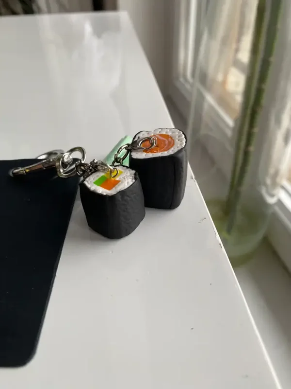 Un petit délice à emporter partout avec soi. Ce charm en argile polymère Fimo reproduit avec fidélité et tendresse la petite bouteille de sauce soja en forme de poisson — icône indétrônable des plateaux de sushis.